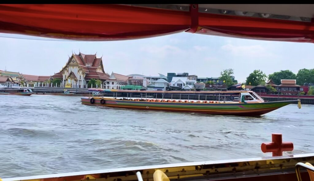 ワット・ポー近くの船着場から渡し船で移動。夕暮れに合わせれば、暁の寺がオレンジに染まる絶景を楽しめます。